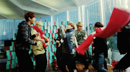 막 화사한 집에 애들 널브러져 있음 아 배고프다‥이런 대사 치고 찬열이가 아! 치킨 시켜먹을까? 이러면서 종인이벌떡 일어나고ㅋㅋㅋ띵동! 소리 나더니 막 경수 배달 복장 입고 웃으면서 배달 왔습니다~ 이러고ㅋㅋㅋㅋㅋ닭다리 뜯고 막 춤추고ㅋㅋㅋㅋ