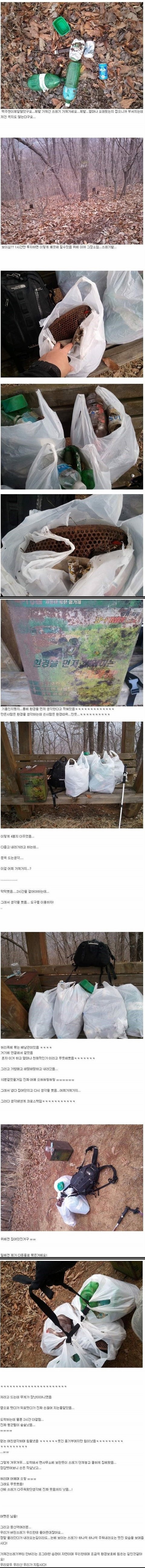없는 여친 생각하면서 산에서 쓰레기 주운 청년