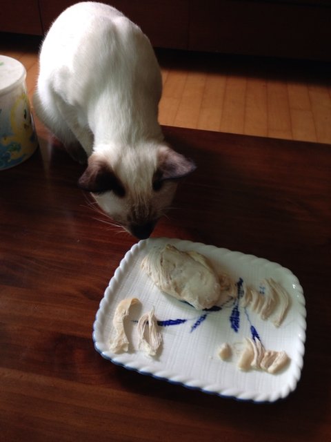 하나는 삶아서 손으로 먹기좋게 찢은 다음에 식혀서 주는 방법(제일 간단)