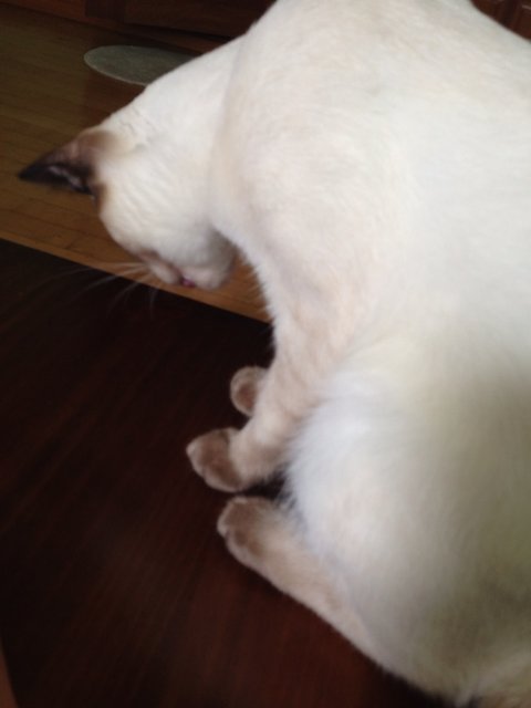 집사의 정성만 담긴 간식을 먹은 쿤이는 나른한지 늘어져 있어요.