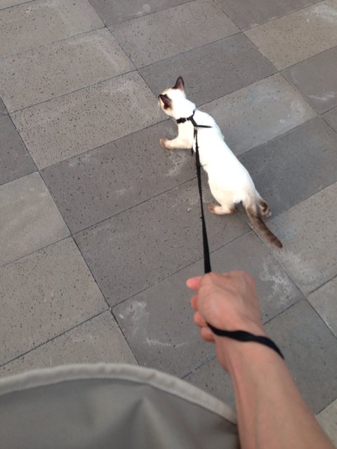 쿤이를 땅에 내려놓고 한바퀴 도는 척 하다 반바퀴만 돌아요(더워서..