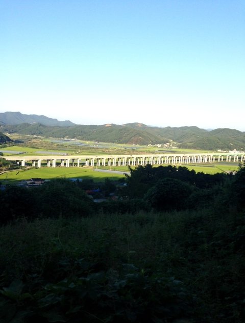예전에는 없었지만 논밭 위로 고속도로가 놓여진 마을의 풍경이에요