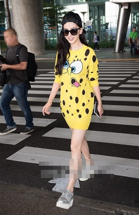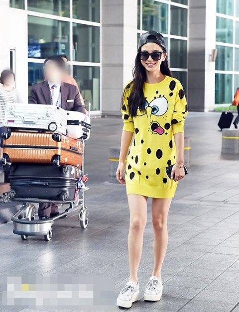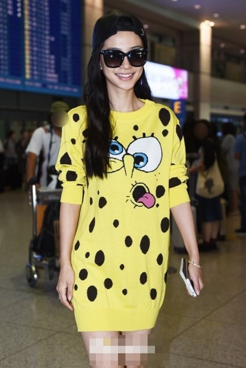 스펀지밥 패션으로 귀엽게 공항패숀을 입음