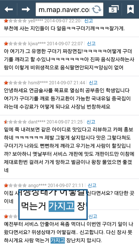 얼마전 9/5일 18시경 짜장면 을 주문해 드신 분께서