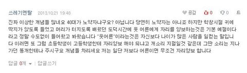 버스에서 자리양보에 관한 이야기였으며, 어떤 할머니가 글쓴이에게 욕설을 하시며