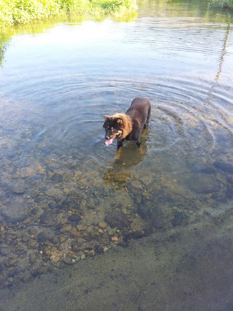 시골의 냇가에 들어가서 물 찹!찹!!찹!!!