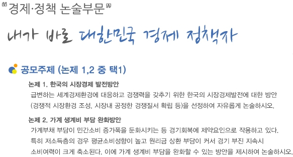 1. 경제정책 논술부문 (1인/팀 최대 2개 응모가능)
