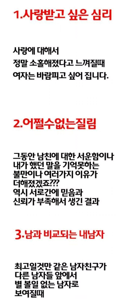 여자가 바람을 피우는 이유