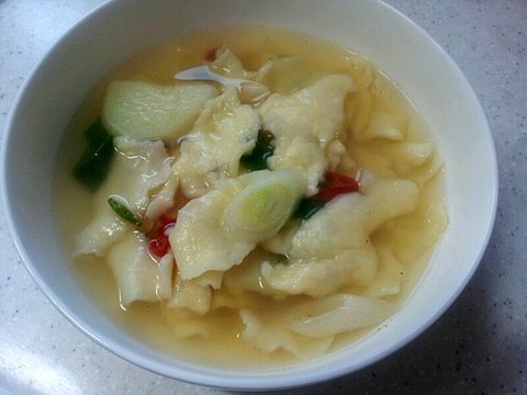 그 자리에서 바로 반죽을 뚝뚝 뜯어놓고 끓인 수제비!
