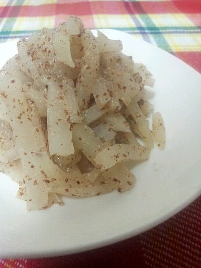 그 수분을 이용하여 무를 익히고, 마지막에 들깨가루를 넣어 고소한 맛을 더한 들깨무나물.