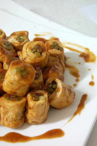요 녀석은 닭가슴살 안에 마늘쫑을 넣어 쪄낸 다음 데리야끼 소스에 졸인 거.