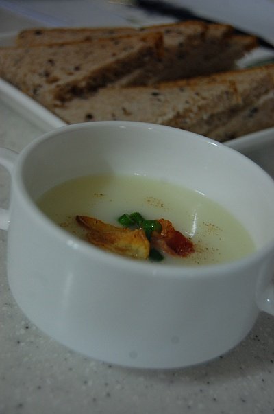 감자를 전자레인지에 쪄서 우유와 함게 믹서기에 갈아 만든 감자 크림 스프!