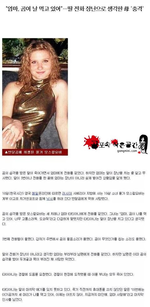 엄마.. 곰이 날 먹고있어.. 딸 장난전화로 생각한 母