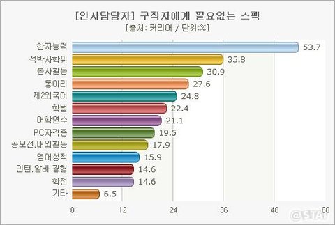인사담당자가 생각하는 가장 쓸모없는 스팩들...