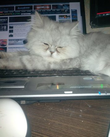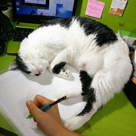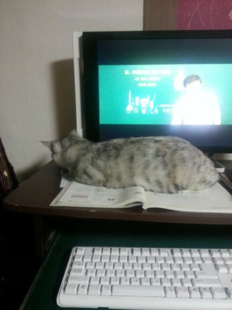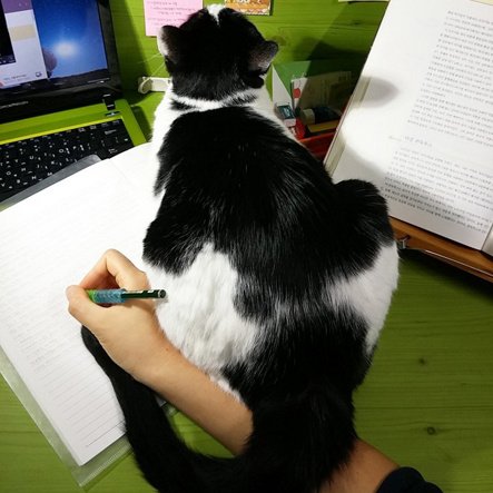 집사의 일을 방해하는 고양이