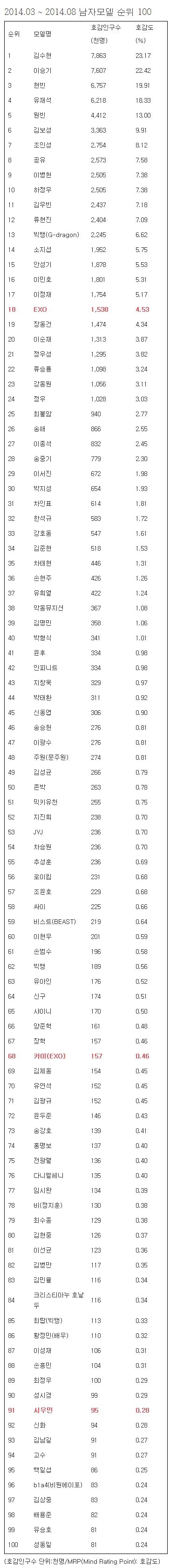3-8월 상반기 총 호감도에 엑소도있고 카이도 있고
