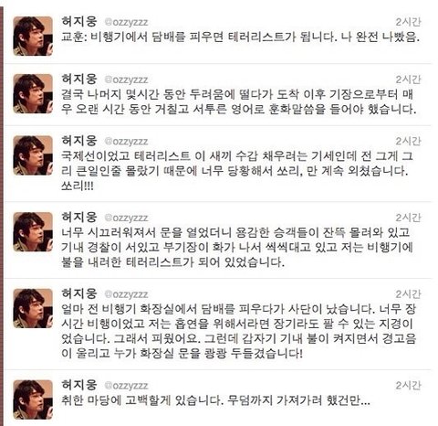 허지웅도 저런말할 자격없다 비행기안에서 담배피고 자랑인듯 올리는 주제에 누구를 일침해