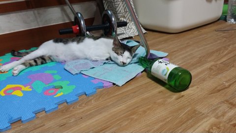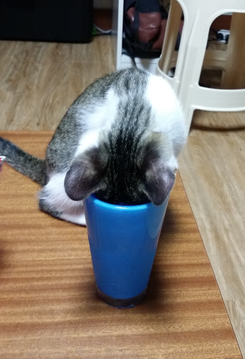 "촵촵 물은 컵에다 먹어야된다 냥"