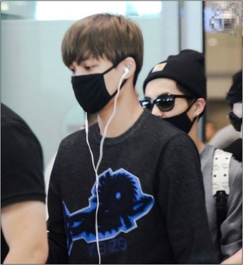 간지 보이답게 겐조 맨투맨에 깔 맞춘 마스크까지