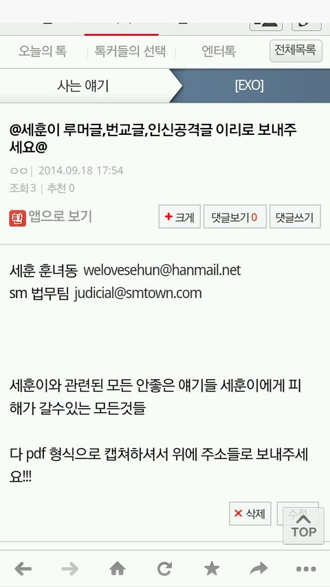 @세훈이 루머.인신공격글 이리로보내주세요@