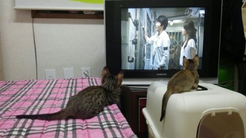 남매가 사이좋게 티비 시청중 ㅋㅋㅋ