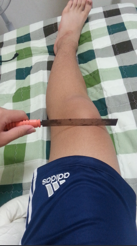 철없는 친구의 말을 듣고 맘씨착한 파랑이 자신의 다리 절단식