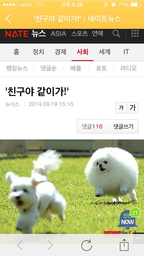 아니, 이건 뭐죠?! 우리뽀리가 ㅠㅠㅠㅠ메인에 똭! 엄마한테 늦게연락받고 완전놀랐습니다.