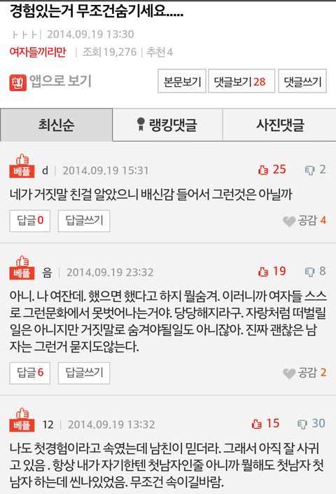 남자들은 그저 여친 입에서 사실이 나오지 않길 바랄뿐입니다. 원래는 바보아니면 다알아요...