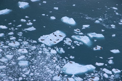 빙하위에 물개들.
