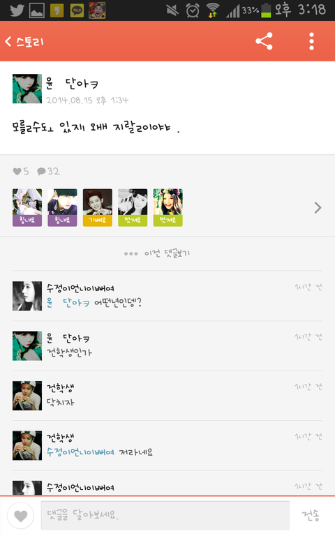 여기까지 보면 알겠지만 두명이 나대는걸 뭐라고 지적하는데 갑자기 한놈이 와서 쉴드침