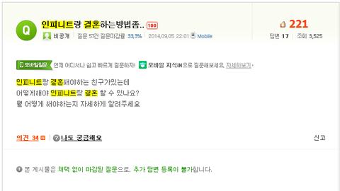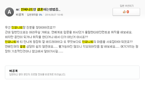 안녕하세요 한 인슾이에요 인피니트 관련 찾아보다가 너무 웃긴 지식인이 있어서 글올려요