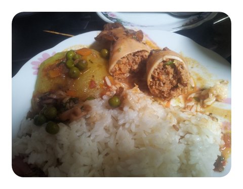 그러니 오징어 속 다진고기 정도로 번역해보면 무리가 아니지만 편의상 Peru식 오징어 순대로 하자.