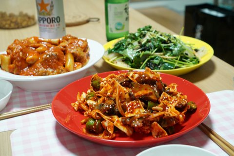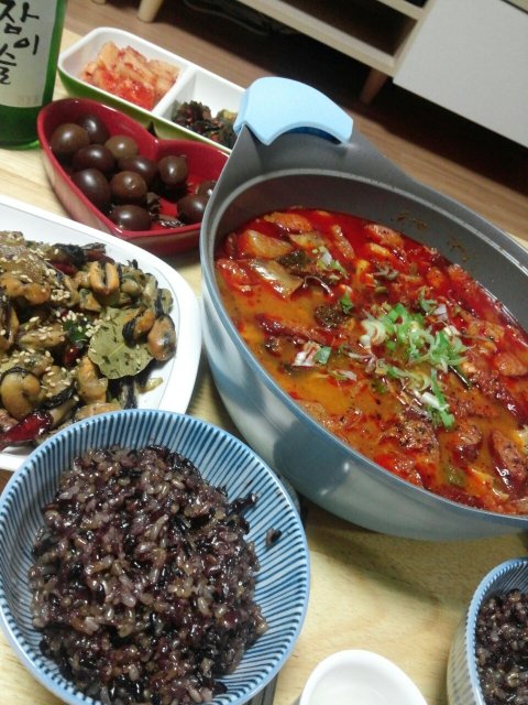 정체불명의 홍합볶음은 홍합이 싱싱하지 못해서 급 대충 만든;;;