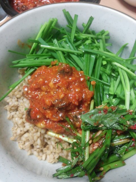 여름에 자주 해먹던 우렁강된장 비빔밥.