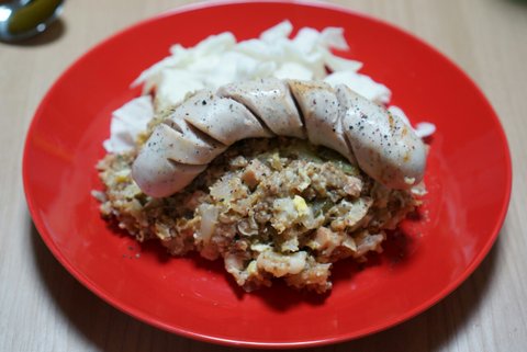 이렇게 수제 소제지를 척 얹어서 내니 나름 멋은 있네요.