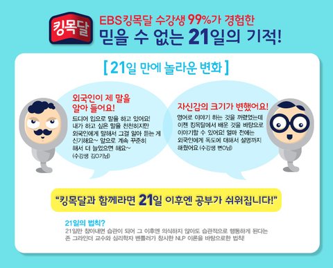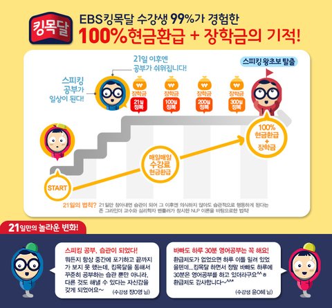 이렇게 EBS 킹목달은 기초영어를 배우는 이들에게 확실한 동기부여가 되고 있답니다.