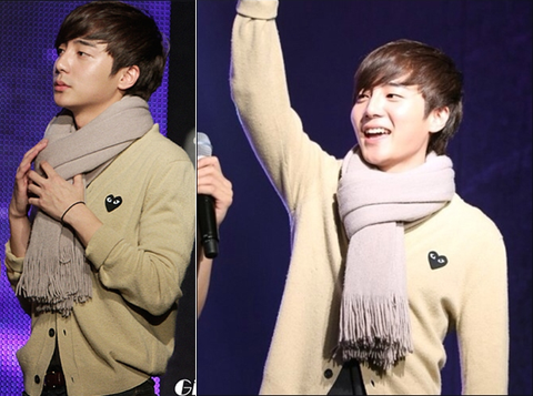 무대에서도 꼼데가르송 플레이 가디건입고