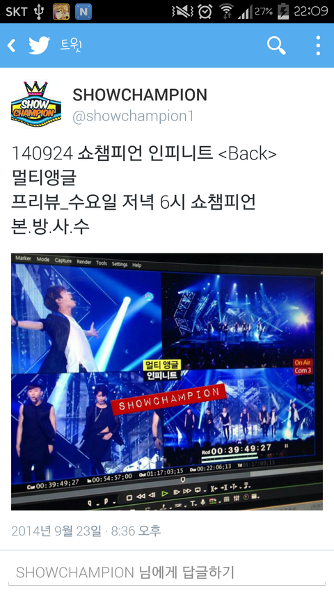 쇼챔피언에 백 멀티앵글이 방송된다는건가?