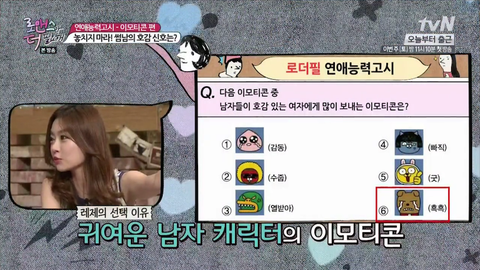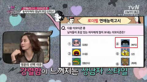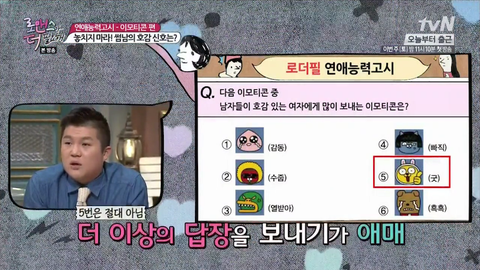 박지윤씨는 남자들이 단순하기 때문에 5번 이모티콘을 보낼거라는 의견!