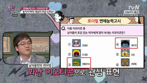 지난번에 ‘여자가 관심있는 남자에게 보내는 이모티콘은?’ 퀴즈를 풀어봤는데요