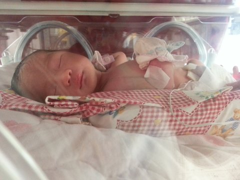 아기는 2.1키로의 여자아기로 태어났고, 미숙아였기 때문에 폐로 자가호흡이 안될까봐 걱정했는데 다행히 우렁차게 울어주었습니다.
