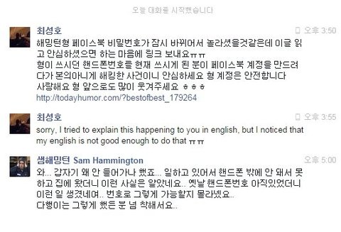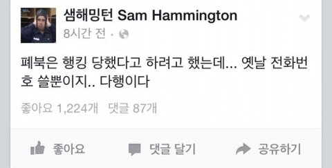 실수로 샘 해밍턴 페이스북 해킹함