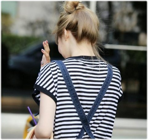 오랜만에 묶음 머리하고 멜빵바지 입고 출근하는 티파니