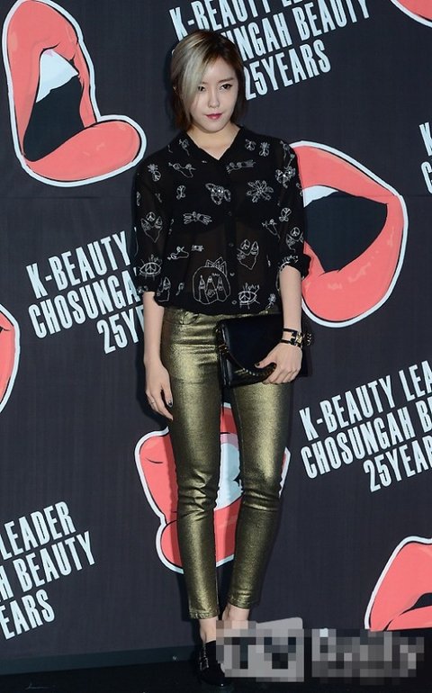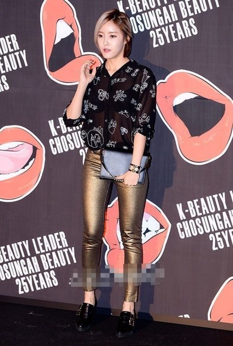 감각적인 샤이닝팬츠에 시스루를 입고 등장하는 티아라 효민