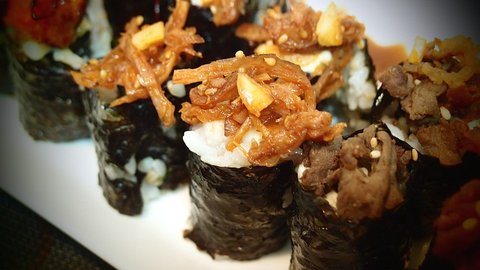 야간매점에서 나왔던 성룡의 기찬김밥을 응용한 꼬마김밥 모듬 입니다.