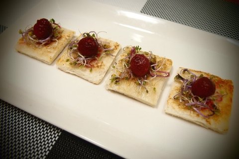 식빵을 이용해서 만든 라즈베리 까나페에요.