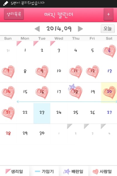 저는 매직캘린더로 배란일을 예측하고 있어요.