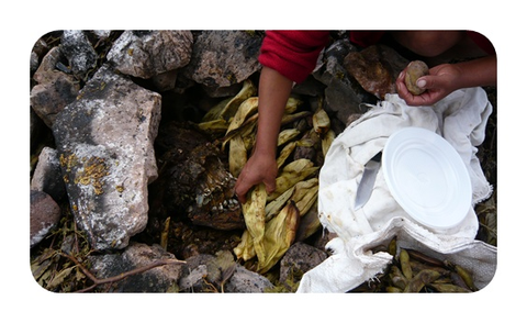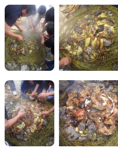 흙구덩이 속에 담겨진 Pachamanca(빠차망까)가 완성되어 모습을 드러낸다.