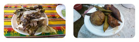 한 시간여 지나 자연식 솥에서 꺼낸 훌륭한 전통식을 그 산간지역 사람들은 동양인 Coreano 여행객에게 팔 분량만큼 건넨다.