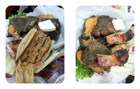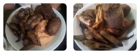 서서히 제대로 익혀진 고기와 큰 완두콩, 옥수수 개떡이나 감자, 고구마등이 1인분에 해당된다.